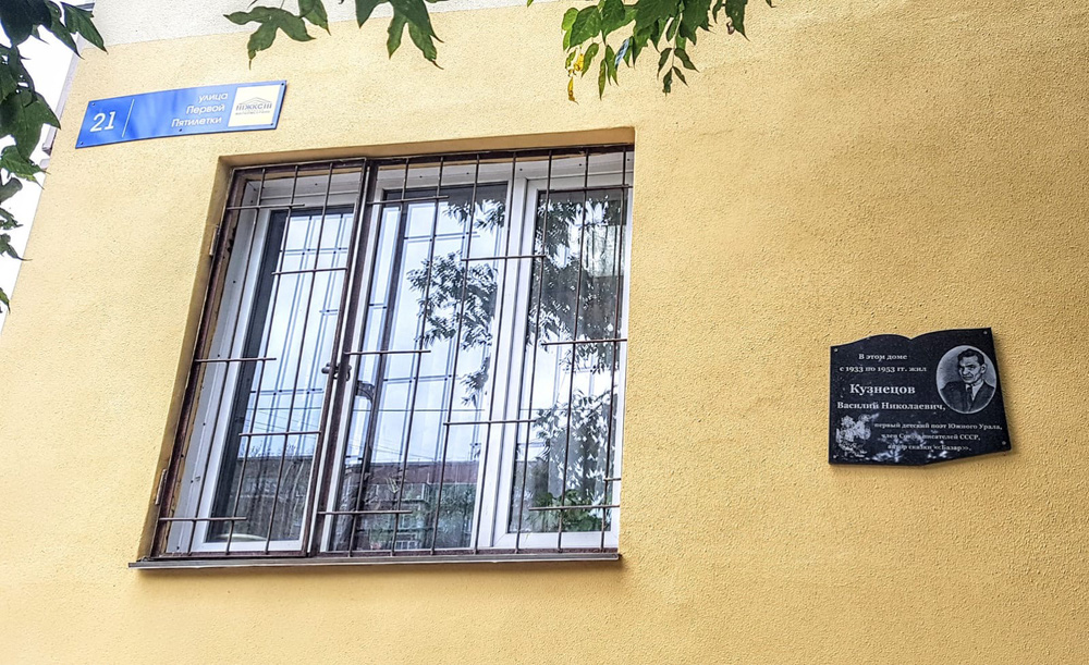 На мемориальной доске надпись: «В нашем селе в 1893 году родился первый детский поэт Южного Урала Василий Николаевич Кузнецов».
